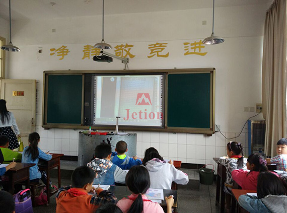 課堂上的很多操作,學(xué)生們?cè)僖膊挥米叩胶诎迩?,把展臺(tái)移動(dòng)到學(xué)生座位上就可以直接進(jìn)行展示,全班同學(xué)通過大屏幕可以清晰看到整個(gè)過程。老師說許多以往因?yàn)楹π卟桓疑吓_(tái)的同學(xué)都開始積極要求課堂上展示,大家的精力和注意力完全聚焦于展臺(tái)的操作上,課堂上師生的互動(dòng)性、學(xué)生參與的積極性都得到了極大的提升。