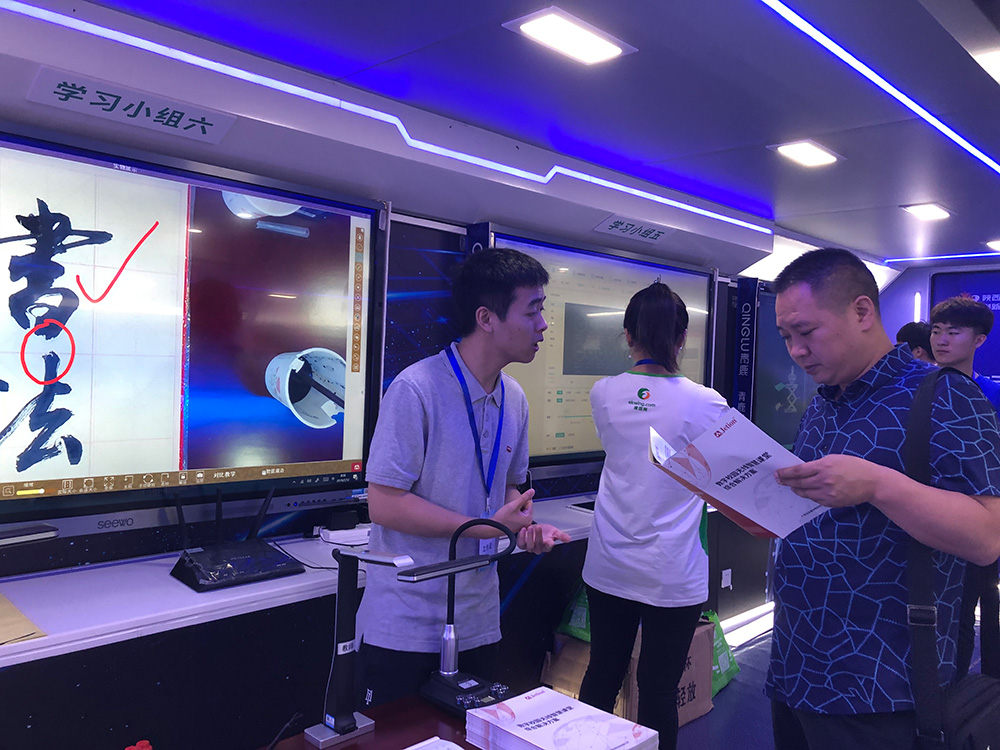 “創(chuàng)新公益行”大篷車首站在楊凌邰城實(shí)驗(yàn)學(xué)校正式亮相,啟動(dòng)儀式結(jié)束后,各級(jí)領(lǐng)導(dǎo)、師生紛紛走進(jìn)車內(nèi)進(jìn)行參觀體驗(yàn),吉星為大家?guī)碜钚碌闹腔坌@全互動(dòng)系統(tǒng)、未來智慧書法教室等創(chuàng)新教育信息化應(yīng)用,贏得了前來參加活動(dòng)的各位領(lǐng)導(dǎo)和師生的認(rèn)可。