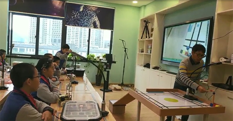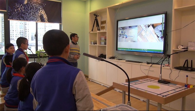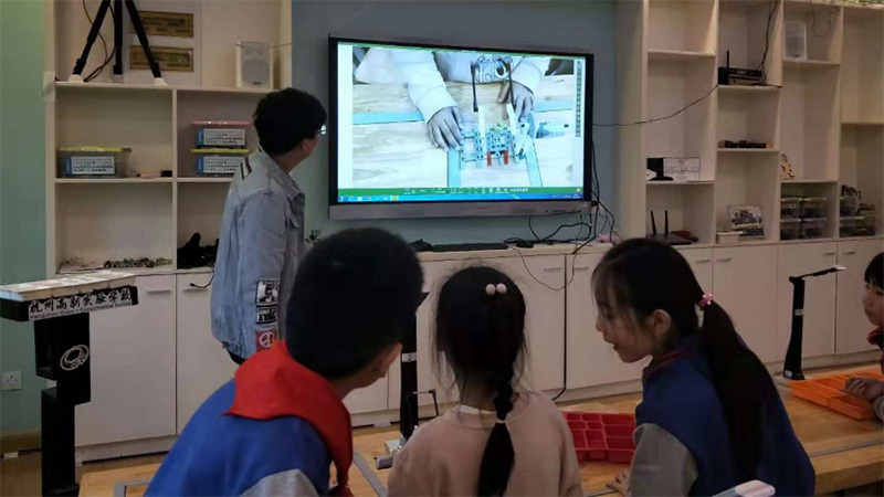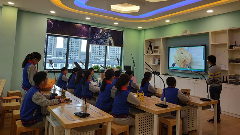 創(chuàng)客老師通過(guò)無(wú)線(xiàn)互動(dòng)終端將實(shí)時(shí)的創(chuàng)客示范教學(xué)過(guò)程清晰的展現(xiàn)給學(xué)生,學(xué)生可在自己座位上進(jìn)行實(shí)時(shí)觀看學(xué)習(xí),無(wú)需圍觀學(xué)習(xí)。