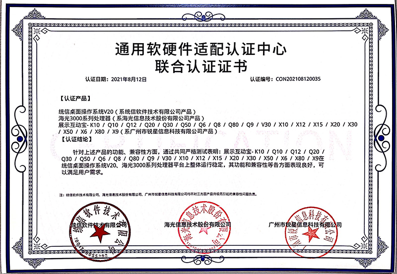 日前,由吉星子公司銳星信息科技自主研發(fā)的無線展臺系列產(chǎn)品與統(tǒng)信UOS桌面操作系統(tǒng)V20完成產(chǎn)品兼容性測試以及產(chǎn)品功能性測試。
