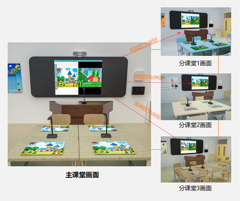 ? 可調(diào)取主課堂、分課堂一或分課堂二的單個畫面進(jìn)行展示