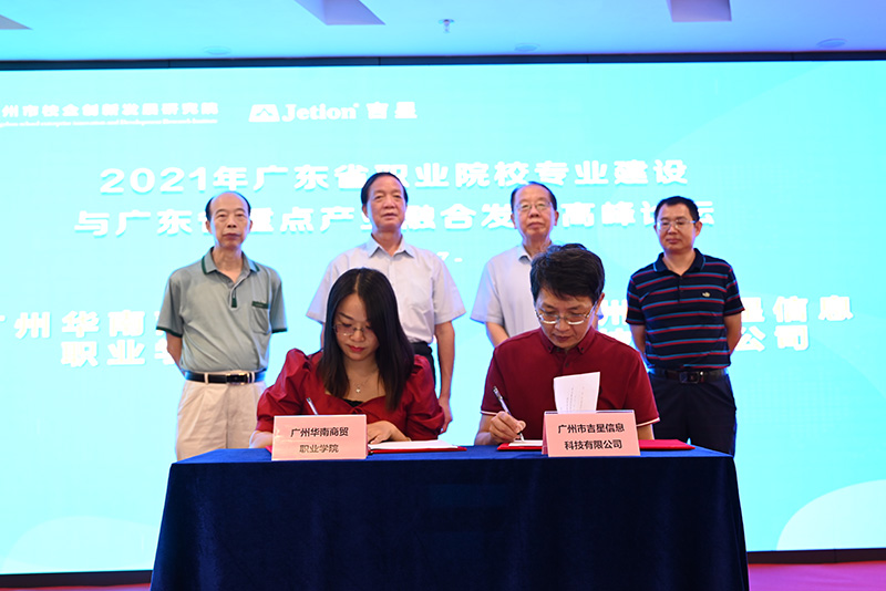 在論壇現(xiàn)場(chǎng),吉星分別與廣州市白云工商技師學(xué)院、廣州華南商貿(mào)職業(yè)學(xué)院簽訂校企合作協(xié)議,進(jìn)一步推動(dòng)校企合作。