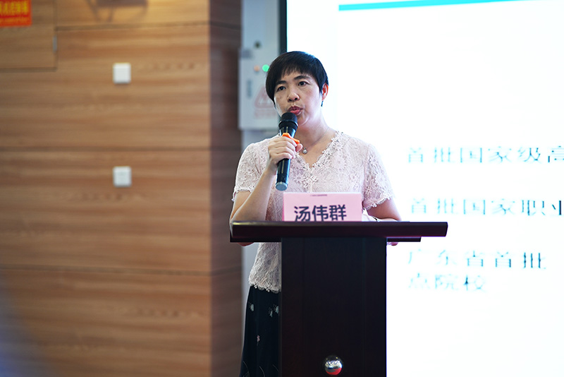 學(xué)校分享環(huán)節(jié),廣州市工貿(mào)技師學(xué)院黨委書記湯偉群帶來了主題為以雙元抓手促進(jìn)產(chǎn)教融合的分享。