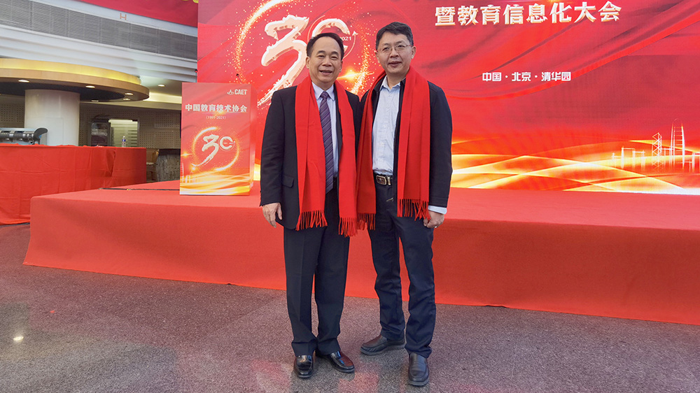中國教育技術(shù)協(xié)會會長楊志堅(jiān)(左一)