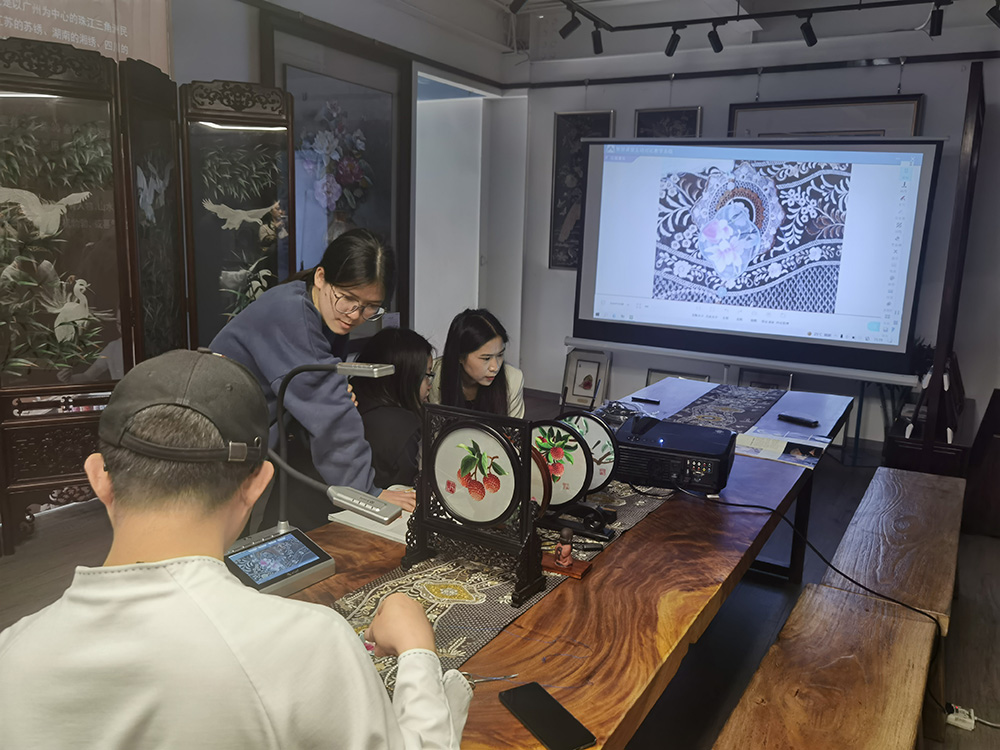 1月4日,在廣繡培訓基地,吉星無線全錄播就在現(xiàn)場展示了廣繡教學的新可能。由廣州市非物質(zhì)文化遺產(chǎn)廣繡項目代表性傳承人王新元大師現(xiàn)場展示廣繡的刺繡針路和繡法技巧。
