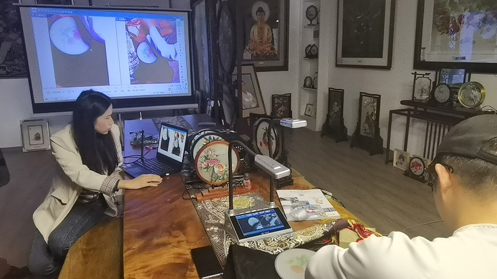 結(jié)合吉星強交互專遞實訓系統(tǒng),能夠?qū)崿F(xiàn)廣繡遠程互動教學。細致到桌面,無論是教授者還是學習者,都能遠程清晰展示。