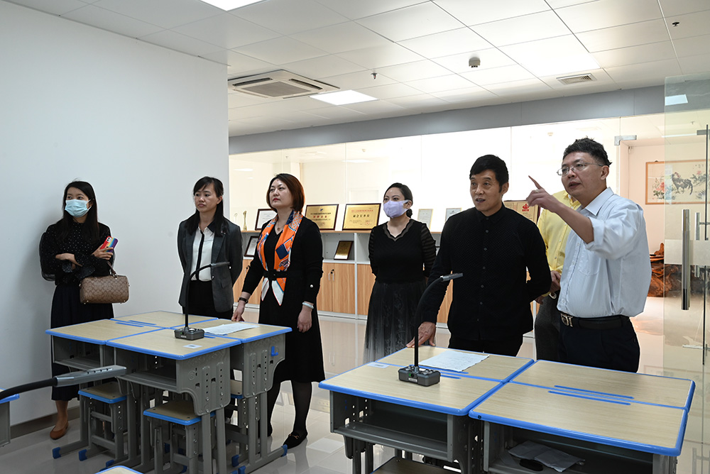 吉星董事長舒華俊全程陪同廣東省教育裝備行業(yè)協(xié)會王自成會長一行,參觀了結(jié)合書法、美術(shù)、護(hù)理、烹飪等不同學(xué)科場景的展廳。