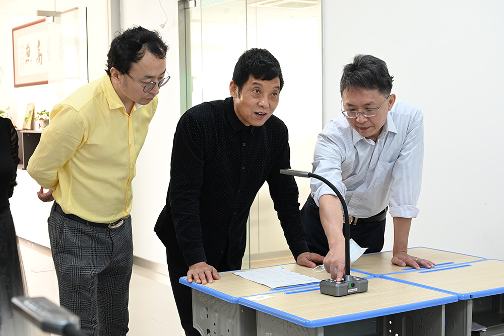 廣東省教育裝備行業(yè)協(xié)會王自成會長、王桂花秘書長,廣東省國學(xué)教育促進(jìn)會路琦秘書長一行深度體驗(yàn)了無線全錄播、強(qiáng)交互專遞課堂、理化生實(shí)驗(yàn)教考系統(tǒng)的實(shí)際運(yùn)用。