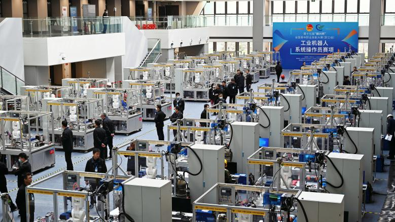 ▲第十七屆振興杯全國(guó)青年職業(yè)技能大賽-工業(yè)機(jī)器人操作員比賽應(yīng)用案例