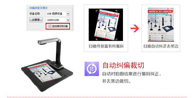 支持OCR識別,對掃描件實(shí)現(xiàn)智能定位;支持自動剪裁,自動糾偏; |
