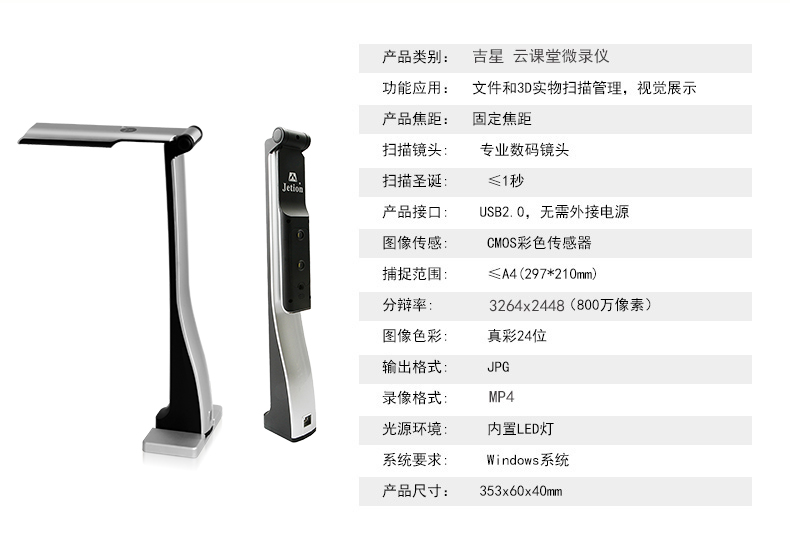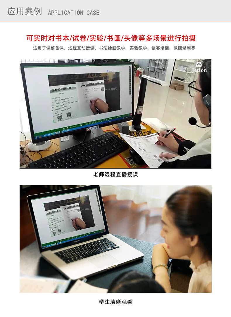拍攝鏡頭 機械折臂270度翻轉(zhuǎn)式:90度可拍攝文稿;180度可拍攝課堂活動,用作簡易的錄播系統(tǒng);270度可錄制微課