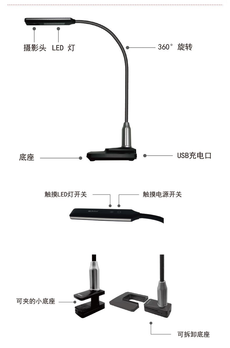 5.插拔式底座雙用,底座和機身可分離,分離后產(chǎn)品可以夾于桌邊。
